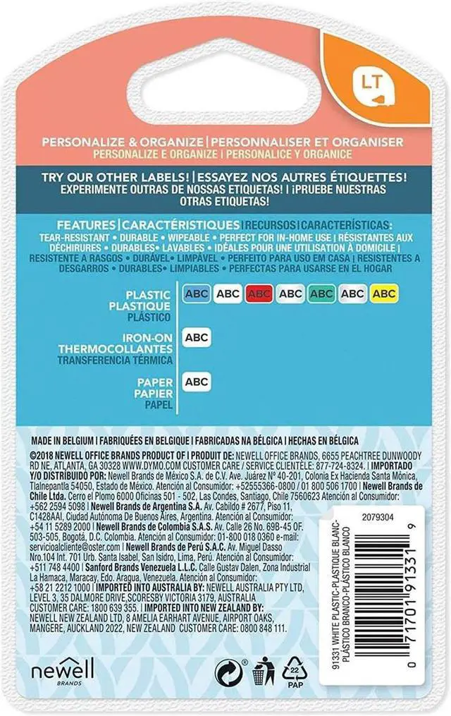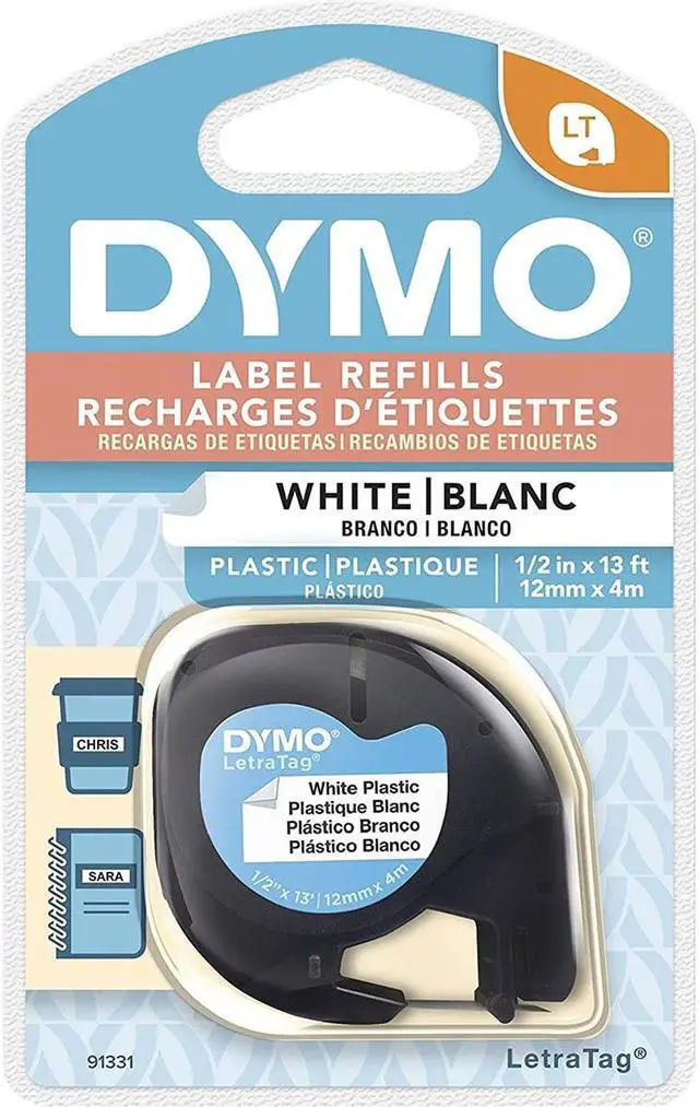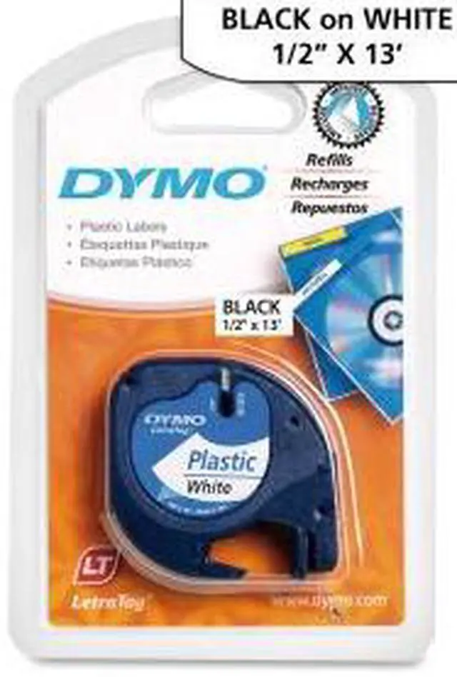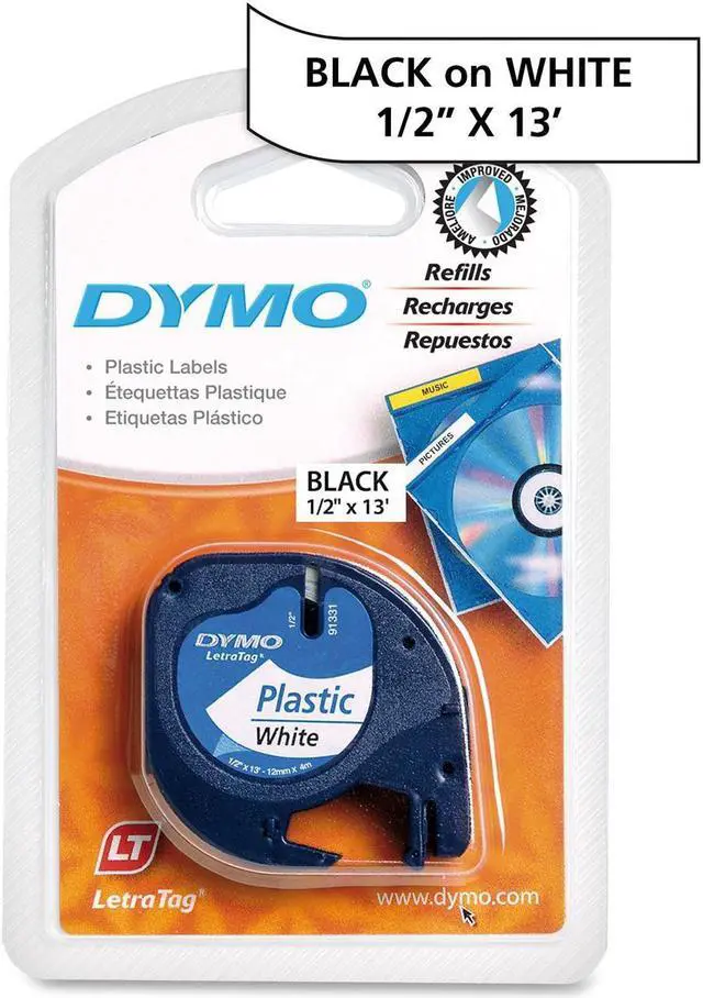 DYMO LetraTag Plastic Labels are tough and tear-resistant and print black text on white labels. Created specifically for your LetraTag label maker, they provide an economical solution for labeling almost anything, anywhere in your home. Direct Thermal print technology compatible with Dymo LetraTag Personal Labelmakers 1/2" x 13'; Black print on white plastic background Flexible performance with fast and easy label application Easy-peel, split-back design Organize your home or office with DYMO LT 91331 tape ( 0.5" x 13'). DYMO LT 91331 black-on-white tape is easy to see against a contrasting background.