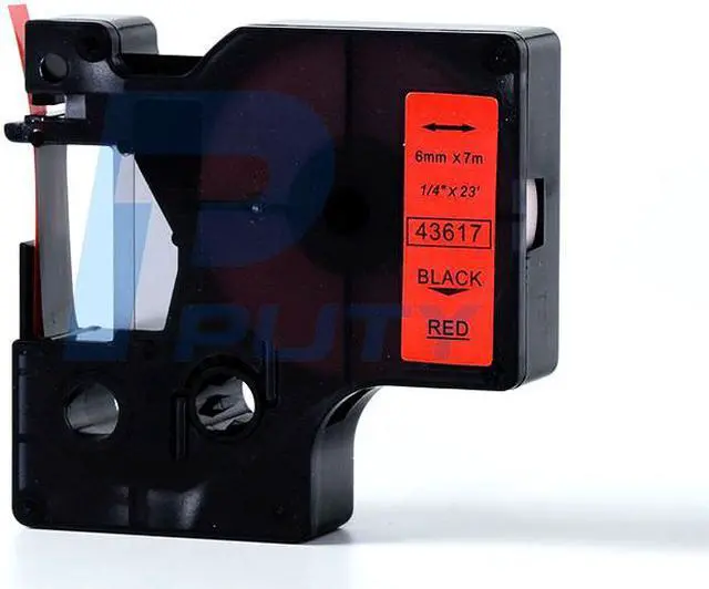 Product Overview: Label tape Red on Blue 1/4 in X 22.97 ft compatible for DYMO Label Manager D1 Tape 43617 Black on Red 1/4 inch wide tape 22.97 ft (7m) yield 2.6 x 0.51 x 2.48 inches ( case dimension ) Suitable for use with the latest models of DYMO Label Manager and other upcoming models.