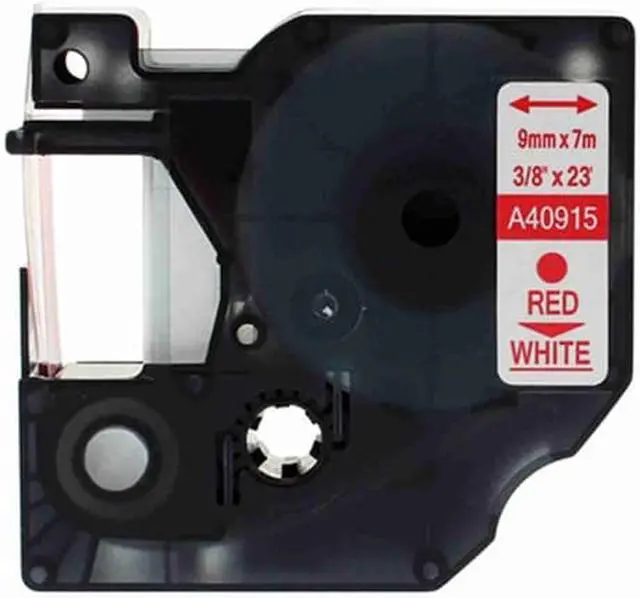 Product Overview: Label tape Red on White 3/8in X 22.97 ft compatible for DYMO Label Manager D1 Tape 40915 Red on White 3/8 inch wide tape 22.97 ft (7m) yield 2.6 x 0.51 x 2.48 inches ( case dimension ) Suitable for use with the latest models of DYMO Label Manager and other upcoming models.