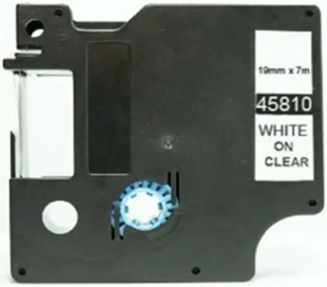 Product Overview: Label tape white on clear 3/4in X 22.97 ft compatible for DYMO Label Manager D1 Tape 45810 3/4 inch wide tape 22.97 ft (7m) yield 2.6 x 0.51 x 2.48 inches ( case dimension ) Suitable for use with the latest models of DYMO Label Manager and other upcoming models.