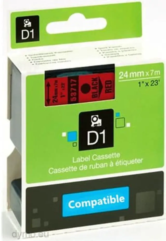 Dymo D1 53717 24mm (1") Black on Red Polyester Tape, Compatible