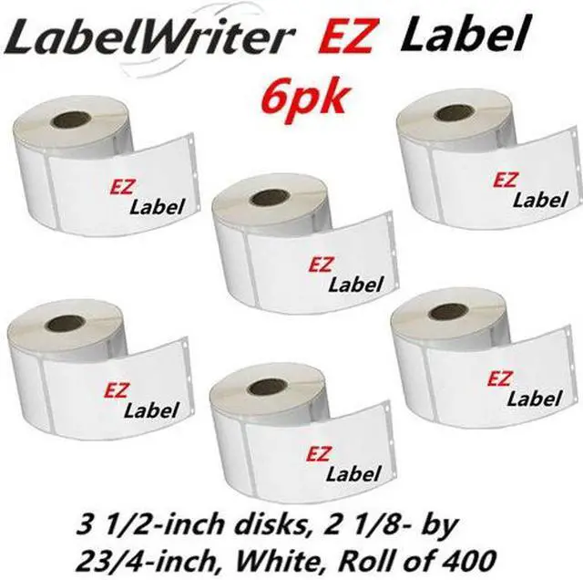 DYMO 30258 LabelWriter Self-Adhesive Labels for 3 1/2-inch disks, 2 1/8- by 2 3/4-inch, White, Roll of 400, 6 Rolls, Compatible