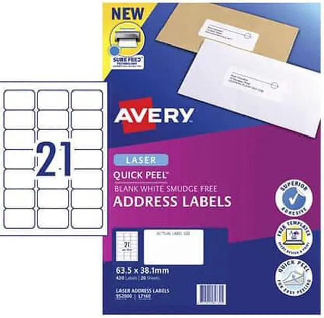 These Avery Laser Address Labels can be printed on allowing you to customise your own address labels, barcodes, logos and more. They are self-adhesive and feature Quick Peel Pop-up Edges for easy and hassle free application. They are created using Jam Free technology ensuring that your lines, images and text are clear and smudge free.