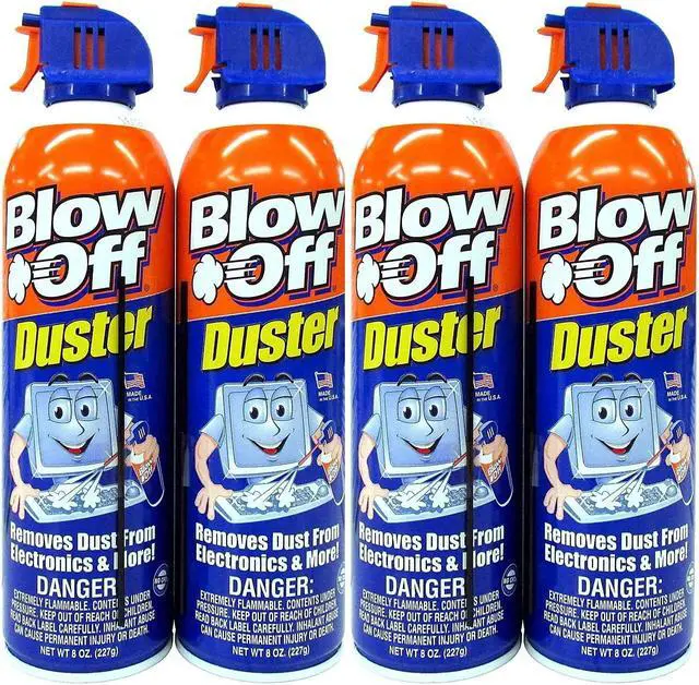 Blow Off Non-Toxic 8oz Compressed Air Duster Can Stop The Build-up of Dust in Your Electronics, Clogging up The Cooling Fan. Pack of 4