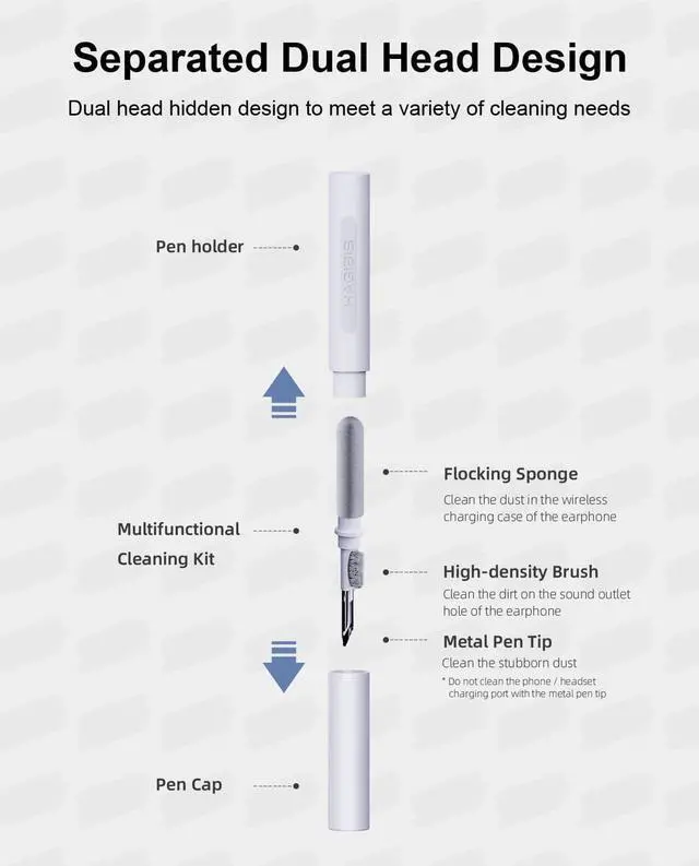 Stylish design: Our multi-functional cleaning pen is novel in design, elegant in appearance, easy to carry, and can be called the golden ratio. We can provide you with the right size, and give you a clean future for your Bluetooth headset, wireless headset, keyboard, etc.