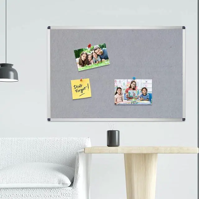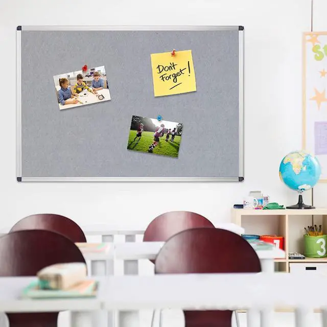 VIZ-PRO 36'' X 24'' Notice Board Felt Gray Board Office Message Board Aluminium Frame