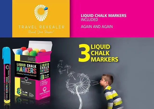 Included bonus: 3 liquid chalk markers ( white, blue, yellow) plus a cloth for cleaning, included with our chalkboard contact paper roll