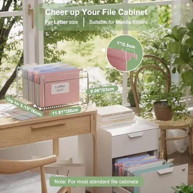 EXPANDABLE POCKET, LARGE CAPACITYThis wheat straw expanding hanging file folder features a single pocket with a bottom that expands up to 3.15. Designed for Letter-size files and most standard file cabinets (L: 11.81 /30cm, H: 9.06 /23cm, fits MANILA folders). The extended 1/ 2.5 cm hooks adapt to more file cabinets. The expandable design grows with your files, preventing wear and tear.