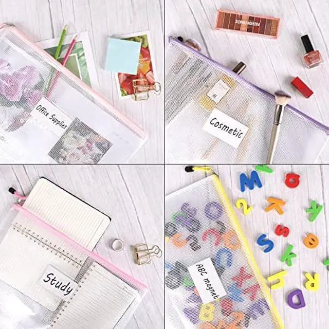 VARIOUS APPLICATIONS: The plastic mesh pouch can help you store and organize documents, stationery, cosmetics, travel items, toys, parts and more. It is the best choice for makeup artists, college students, elementary school students and office workers.