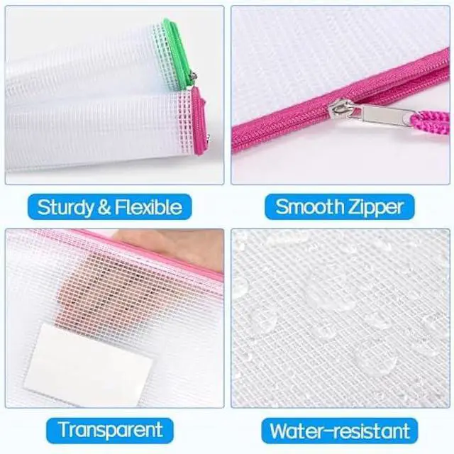 Premium Quality & Durable: The plastic mesh pouch is made of high-quality PVC material, thicker than similar products, and durable for everyday use. The metal zipper glides smoothly, which is sturdy and not easy to fall off. Waterproof bags keep your items from water spills and dirt.