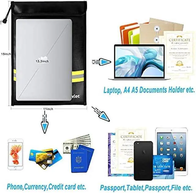 WHY CHOOSE THE REAL FIREPROOF & WATERPROOF BAGS: Safe document storage designed to protect valuable items from fire, rainwater, or poorly functioning lithium battery packs. This fireproof document bags can keep your valuable items safe even at unforeseen fires.