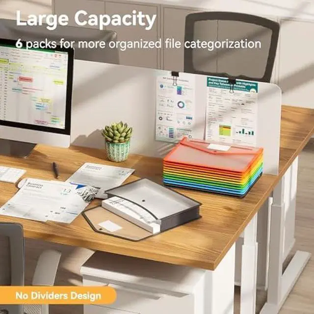 Colorful Transparent Overflowing Document Folder: Six Pack Plastic folder extra roomy at 12.7 × 9.8, roomier than A4, with roomy expansion of 2 for a whopping 1000 sheets capacity. 6 concoction of vibrant colors: Blue, Yellow, Green, Black, Orange, Red, making categorizing a delightfully different experience.