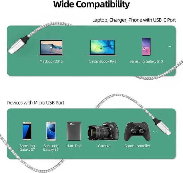 Sturdiness & DurabilityApplying aluminum alloy case and braided thread jacket our type c to micro usb cable has anti-scratch performance and minimize wear and prevent breakage. All of these designed for longlasting using. Multi-Functions CablePerfect for charging and data transfer syncing between vatious devices. Very fit to transfer data from your previous phone to a new one. The usb c to usb micro cable could link a camera to laptop for tansmission. Hign Speedy TransferOur usb-c to micro usb cable maximum supported data transmission speed is up to 480Mbps maximum current reached 3A. A cable for bi-directional sync.