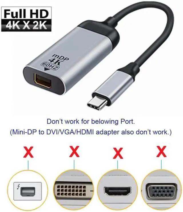 USB-C Type C to Mini DP Displayport Converter Adapter 4K 2K 60hz for Tablet and Phone and Laptop