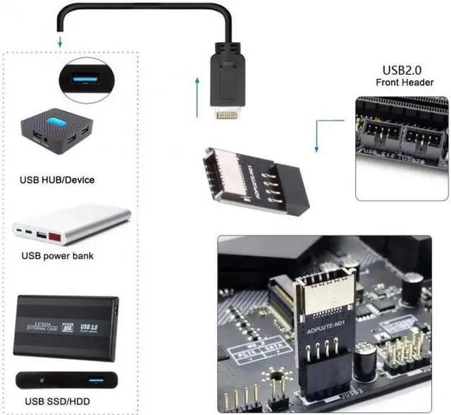 USB 3.1 Front Panel Socket Key-A Type-E to USB 2.0 9Pin 10Pin Mainboard Header Male Extension Adapter
