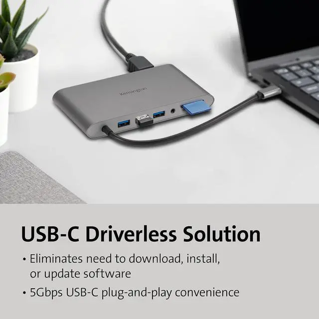 No need to download, install, or update software this 5Gbps USB-C plug-and-play solution provides five ports of connectivity