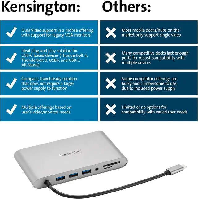An ideal plug and play solution for USB-C based devices (Thunderbolt 4, Thunderbolt 3, USB4, and USB-C Alt Mode) running Windows 10 or later, macOS 11 or later, iPadOS 13 or later, and Samsung DeX