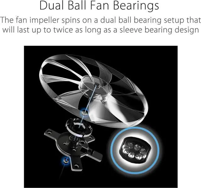 Dual ball fan bearings can last up to twice as long as sleeve bearing designs