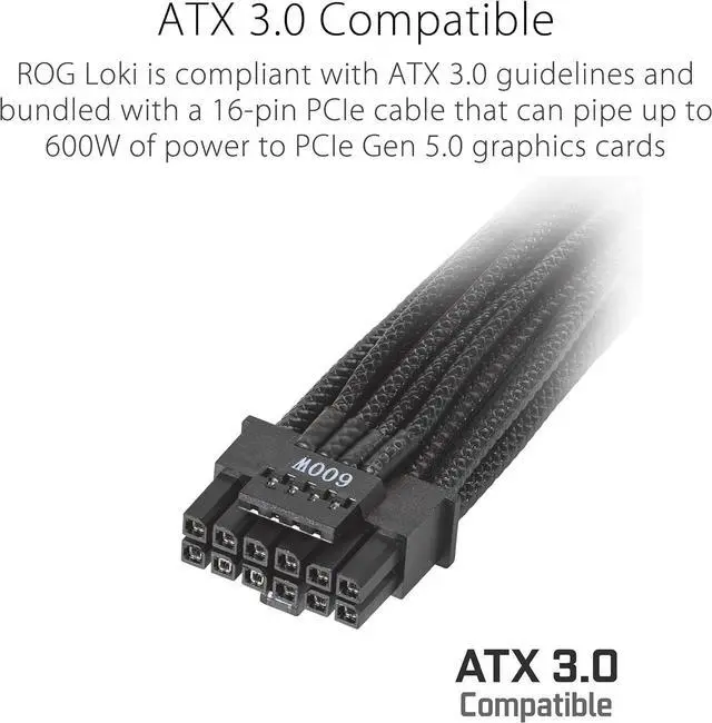 ATX 3.0 compatible: ROG Loki is compliant with ATX 3.0 guidelines and bundled with 16-pin PCIe cables that can pipe up to 600W of power to PCIe Gen 5.0 graphics cards