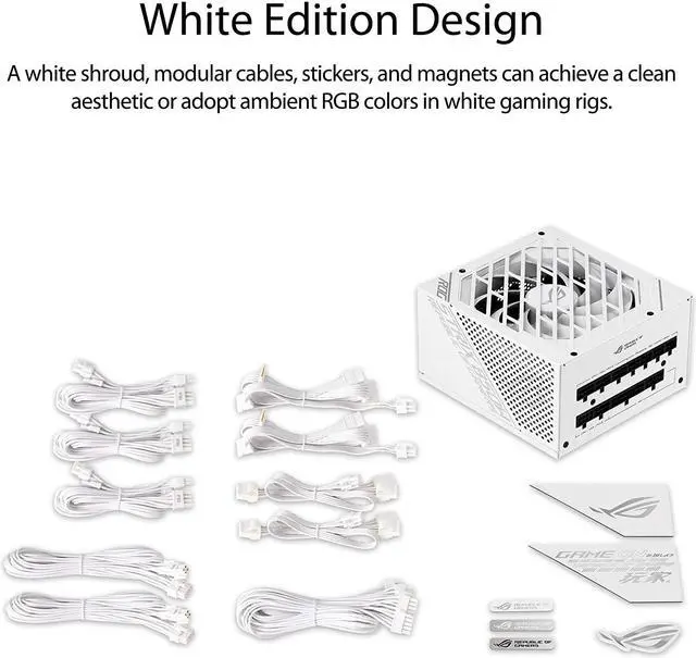 ASUS ROG Strix 850W White Edition PSU, Power Supply (ROG heatsinks, Axial-tech Fan Design, Dual Ball Fan Bearings, 0dB Technology, 80 Plus Gold Certification, Fully Modular Cables, 10-Year Warranty)