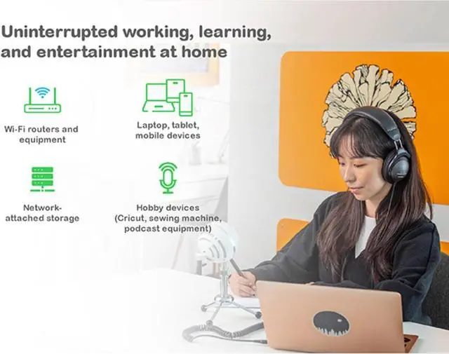 8 Outlets (NEMA 5-15R): 6 ups battery backup & surge protector outlets; 2 outlets with Surge Protection Only