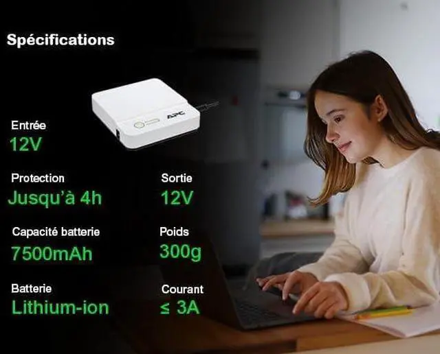 12VDC 36 Watts DC UPS Lithium-ion battery Comes with 3 different DC tips to ensure compatibility Up to 4 hours of runtime LED indicators to read UPS status and battery capacity information