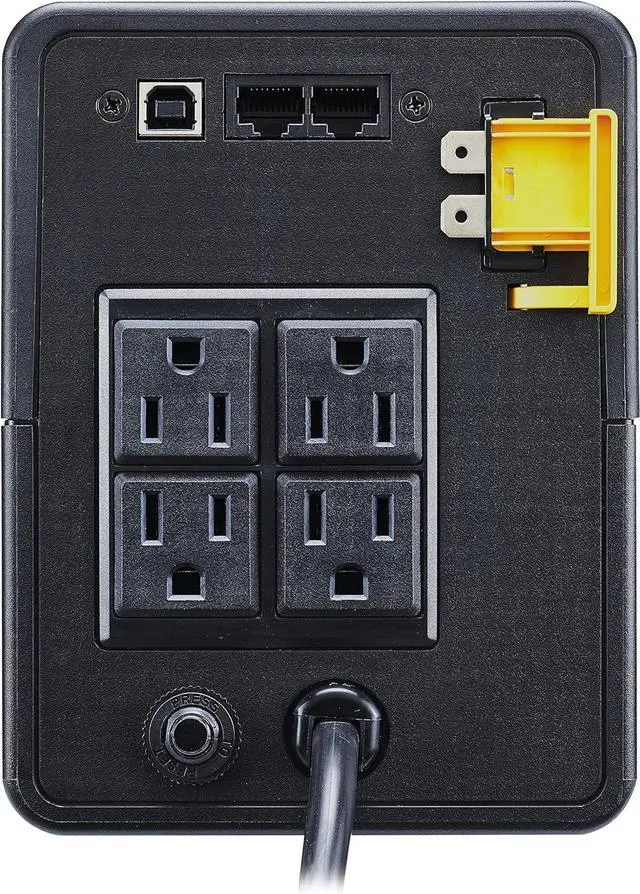 Automatic Voltage Regulation (AVR), Surge-protected 1 Gb dataline ports, 5' Power Cord with right-angle wall plug (NEMA 15-15P)