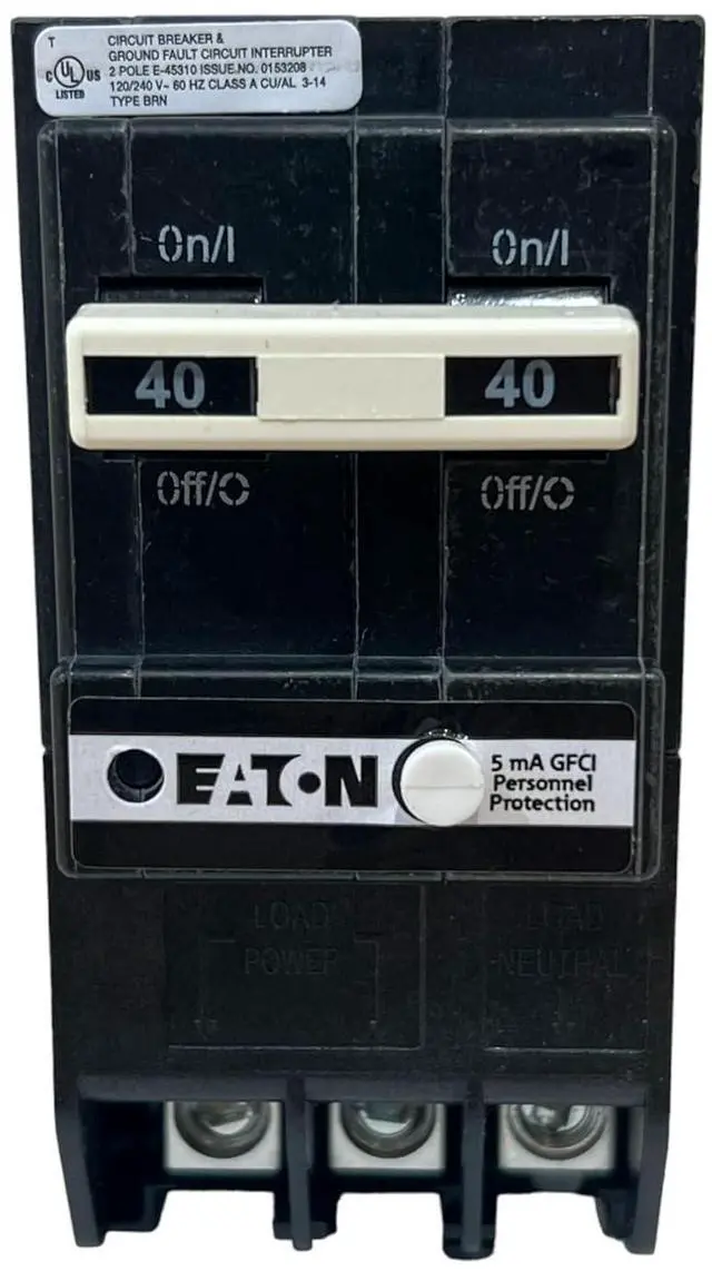 Type Ground Fault Personnel Protection Circuit Breakers, Voltage Range 40A, 120/240V, Travel Type, Common Circuit Protection, Ground Fault Circuit Breaker, Indicators GFI INTERRUPT RATING 10 kAIC Main Circuit Breaker GFTCB Wire Size #14-4 AWG NNNNNLES Two Pole