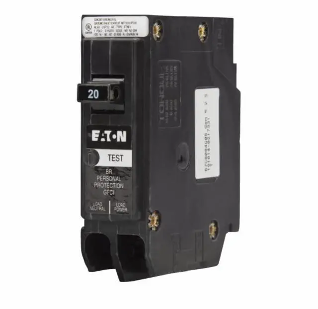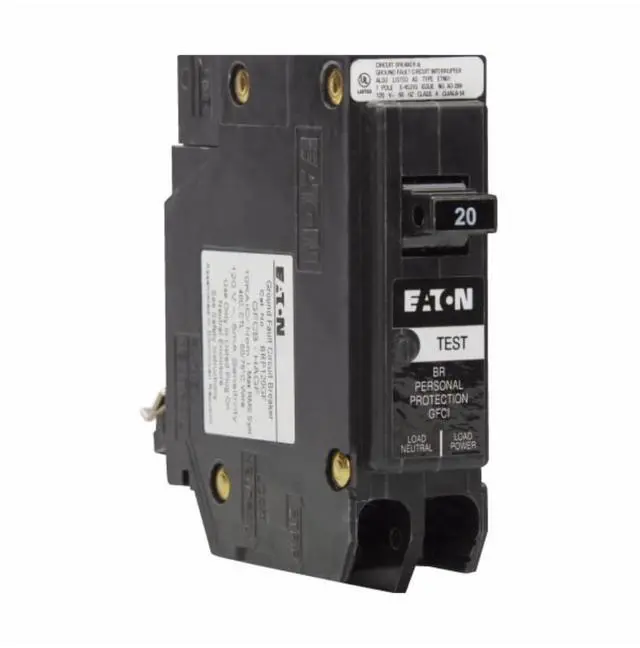 Eaton BRP120GF Breaker, 20A, 1P, 120V, 10 kAIC, Type BR Ground Fault