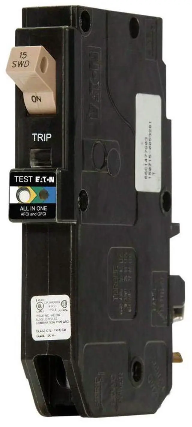Quick, easy and clean describe the new plug-on neutral design attributes offered by Eaton. Time saving features offer a quick installation equating to less time on the job. Designed to maximize installation efficiency and to provide additional convenience allowing for an easy installation. New features that help ensure an aesthetically clean and professional installation. Redesigned electronic breakers into a short-body to optimize gutter space and save time with an easier, more succinct installation process. CH type plug-on neutral dual function arc fault and ground fault breaker is compatible with CH type plug-on neutral breaker boxes Provides one device for both arc fault (AFCI) and ground fault (GFCI) protection for the entire circuit including homeruns Integral LED indicates different trip causes, reducing troubleshooting time Trip flag visibly indicates breaker status Reduced clutter of pigtails provides a clean gutter space and professional appearance Backed out neutral screws allows for quick connection of neutral and ground conductors Guide fin on electronic breakers for ease of installation