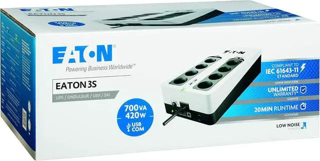 Eaton 3S 700 FR UPS - Off Line Uninterruptible Power Supply - 3S700F - 700VA (8 outlets FR, USB, Shutdown Software)