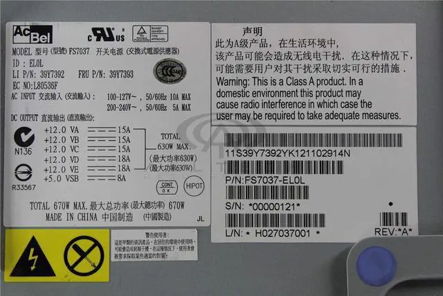 IBM 39Y7392/39Y7393 670W Power Supply for X3400M2