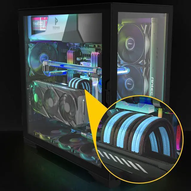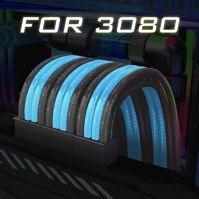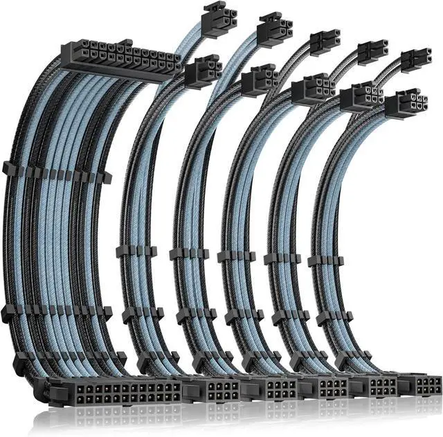 Premium PET sleeve cables, included: (1) 24Pin ATX, (2) 4+4Pin eps, (3) (6+2) Pin PCI-E; compatible with all power supplies.
