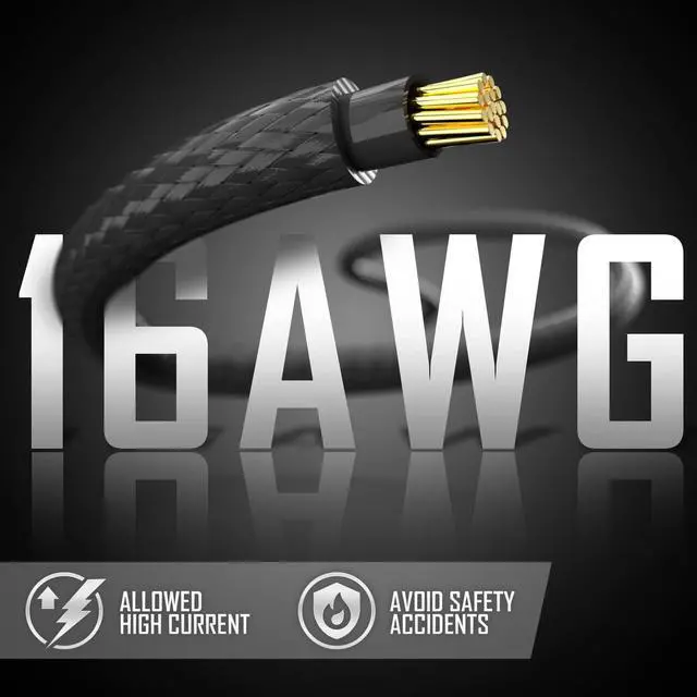The Thick cable has a warm sheen woven appearance. Triple Layer Weaving design with 16AWG, 300mm, 100% heatshrink-free.