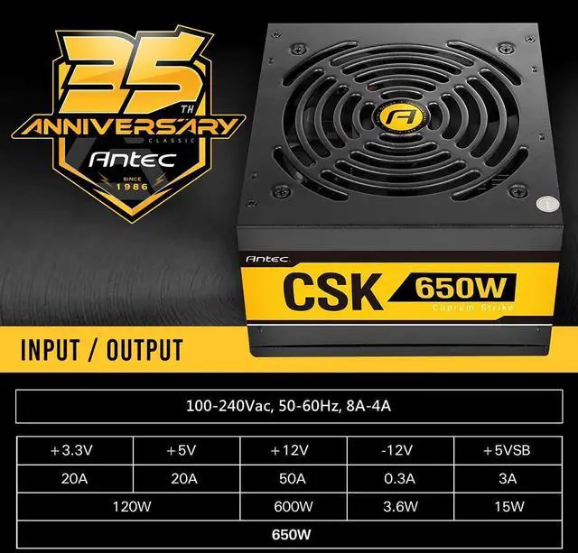 Antec Bronze Power Supply, CSK 650W 80+ Bronze Certified PSU, Continuous Power with 120mm Silent Cooling Fan, ATX 12V 2.31 / EPS 12V, Bronze Power Supply