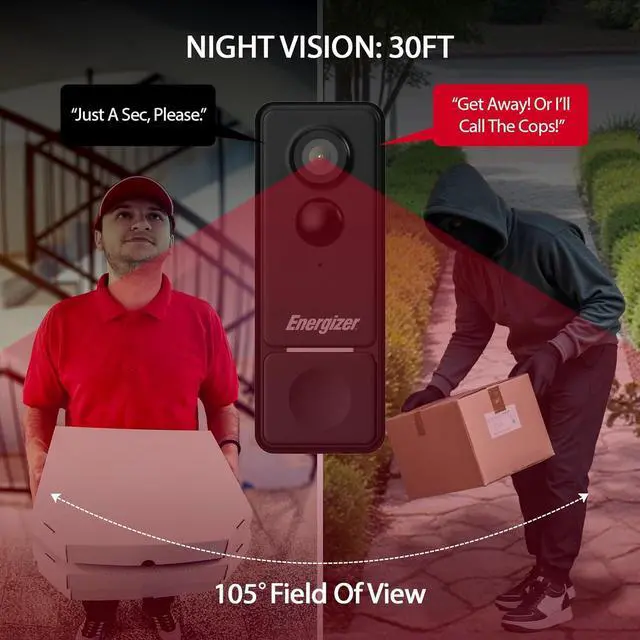 Crystal Clear 2K Video Quality: Experience ultra-sharp, high-definition video with the Energizer Smart Doorbells 2K resolution, providing you with detailed visuals whether it's day or night. The integrated night vision ensures clear footage even in low-light conditions, enhancing your home security 24/7.