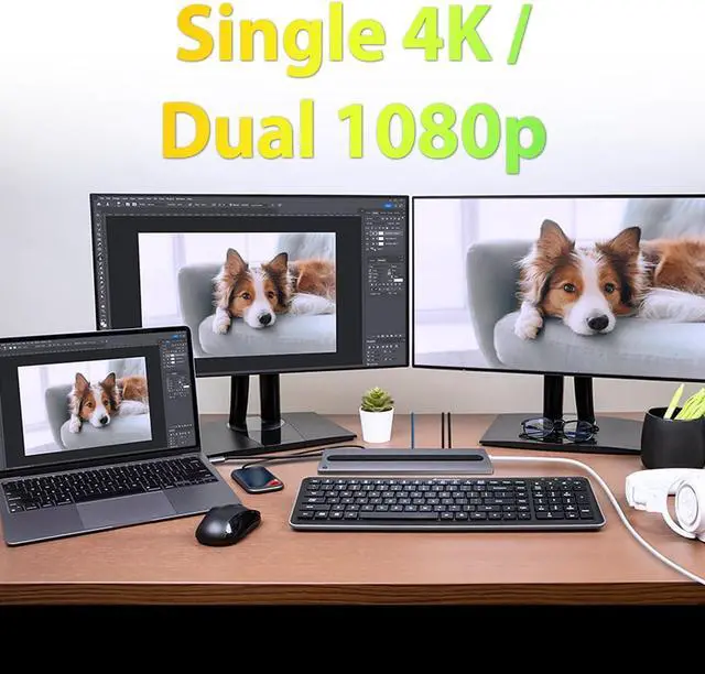 Maximize Your Workstation Enjoy stunning 4K visuals while charging your laptop and connect up to 7 other devices. Expand your workspace with HDMI and DisplayPort options for flexible connectivity.