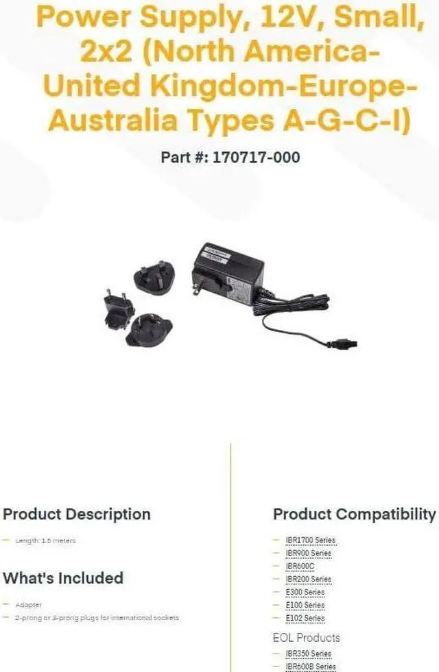 Ideal for companies with teams abroad Help you power cradlepoint routing solutions Cradlepoint Power Supply comes with US, EU, UK and AU adapters for all COR series routers (IBR350, IBR600, IBR600B, IBR600C, IBR900, IBR1100)