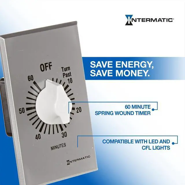 • ENERGY-SAVING TIMER CONTROL: Ensure efficient energy usage with the Intermatic SW60MK 60-Minute Spring Wound Timer, perfect for controlling LED and CFL lights in homes, offices, and commercial spaces.