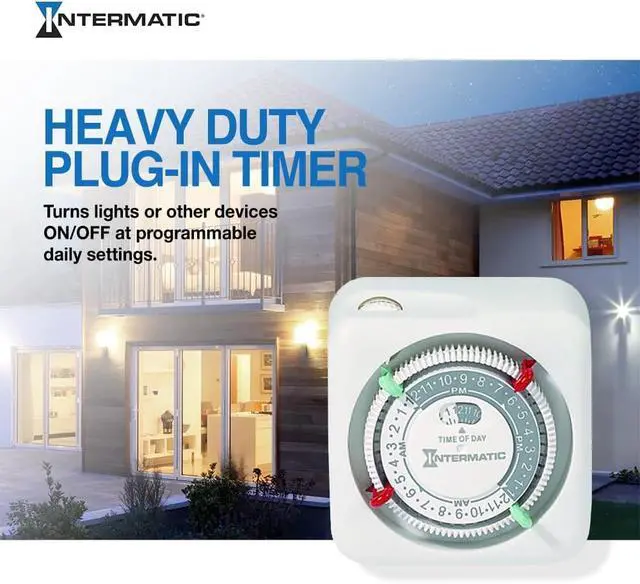 The TN111K premium indoor 24-hour plug-in timer is simple to use and program. Simply set the ON/OFF trippers into the desired time slots, then plug the light into the timer and the timer into the wall outlet. It is ideal for lamps and appliances. You can schedule 2 ON/OFF events at 15-minute intervals. CSA certified. 15A, 125VAC, 60Hz.