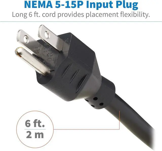 CONVENIENT OPTIONS FOR PLACEMENT IN ANY ENVIRONMENT: 6 ft. AC power cord with NEMA 5-15P plug provides to ability to reach distant outlets