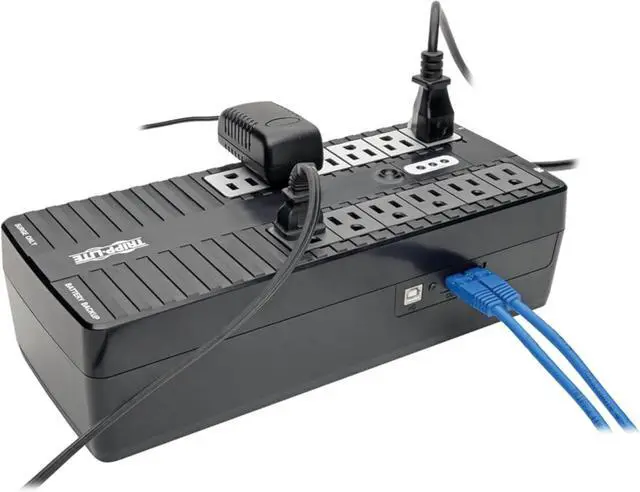 12 outlets (6 UPS-supported, 6 surge only) plus single-line tel/DSL surge protection