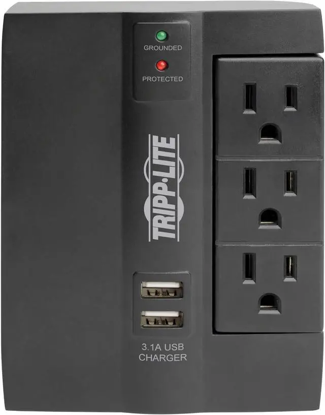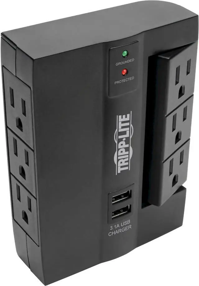 Six outlets three that rotate: this black surge suppressor provides six nema-15r outlets. Three of the six outlets rotate 90 degrees
