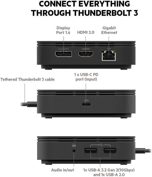 THUNDERBOLT-CERTIFIED: The Thunderbolt 3 Dock Core brings the speed, high-definition, and performance of Thunderbolt technology to Mac and Windows laptops. This dock is a streamlined way to create an expanded, high-performing desktop through a single tethered cable