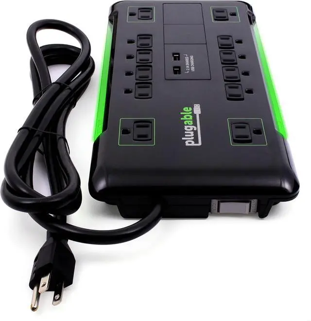 Power and Protect: 12 outlet surge protector with four extra-wide spaced outlets and USB charging and a 6 foot cable