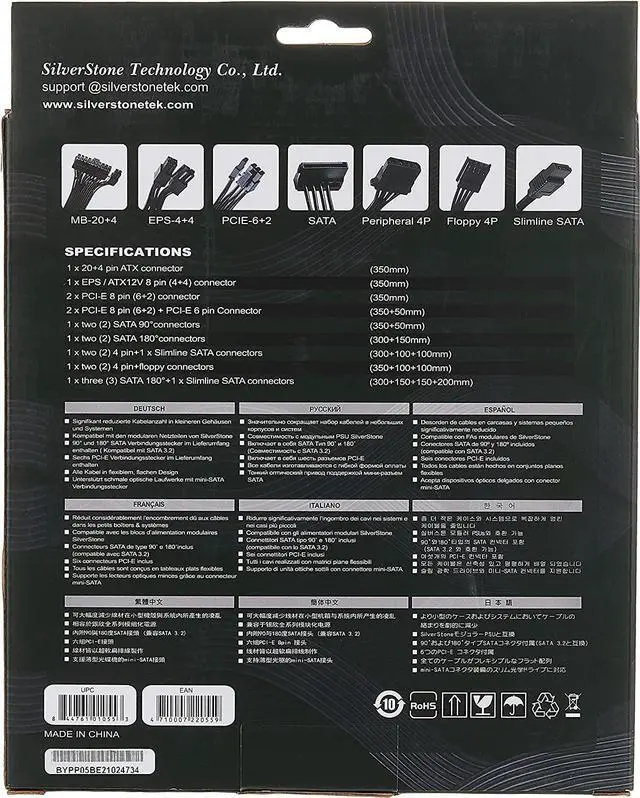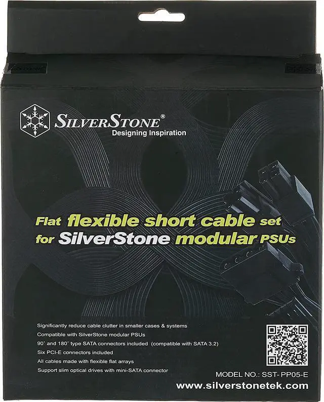 The original PP05 cable set created by SilverStone in 2008 was a revelation for enthusiasts of small form factor computing. Besides being made shorter for smaller cases like its predecessor, the PP03 (launched in 2005), it also introduced the idea of a cable set in which users can keep for multiple upgrades. Silverstone's continued commitment to using the same power supply connectors ensured that PP05 purchased in 2008 are still perfectly usable in 2013 and beyond. To improve this handy set of cables further, SilverStone created the PP05-E, the next evolution in power supply cables made for small form factor. To improve compatibility and ease of installation, the PP05-E is made with more flexible cables that allows for much tighter bends than traditional cables. This eliminates component interference problems that often plaque small form factor builds. To further save precious space, PP05-E's cables are also designed in flat arrays for unprecedented flexibility. As before, the PP05-E are made to match SilverStone modular PSUs, so useful extra cables and connectors are added to help enthusiasts use as few cable as possible (dual PCI-E connector cables) or to connect with the more popular slim optical drives (mini-SATA).
