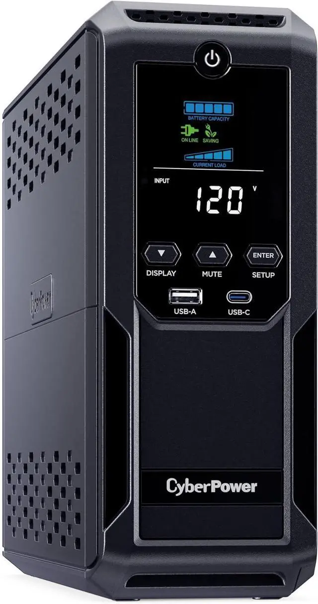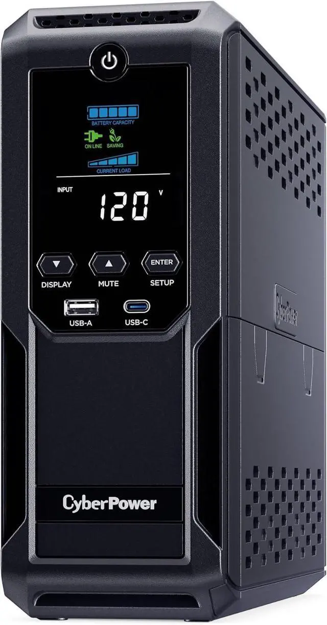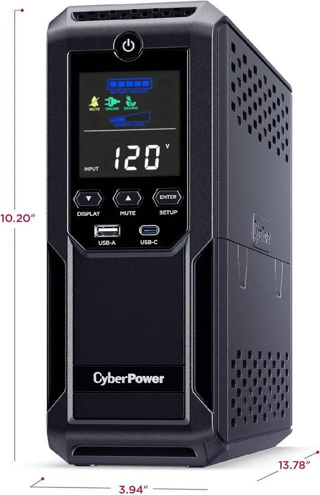 1350VA/815W Intelligent LCD Uninterruptible Power Supply (UPS): Uses simulated sine wave technology to provide battery backup power to safeguard workstations, networking devices, and home entertainment equipment