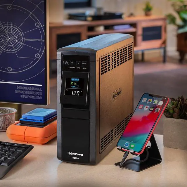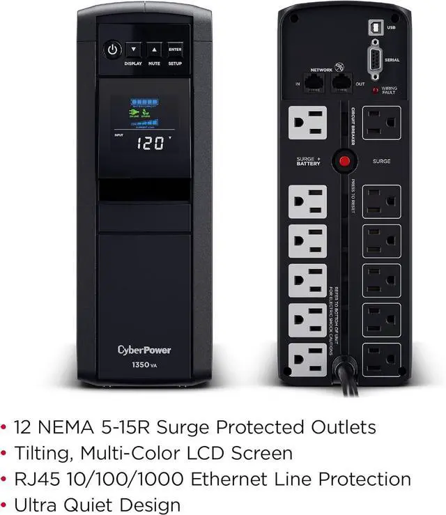 1350VA/880W PFC Sine Wave Battery Backup Uninterruptible Power Supply (UPS) System designed to support active PFC and conventional power supplies; Safeguards computers, workstations, network devices, and telecom equipment
