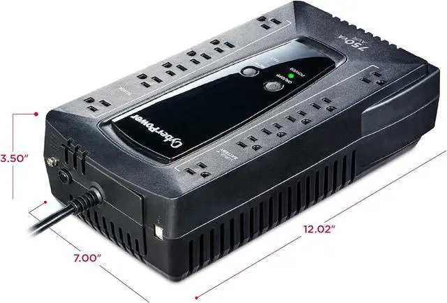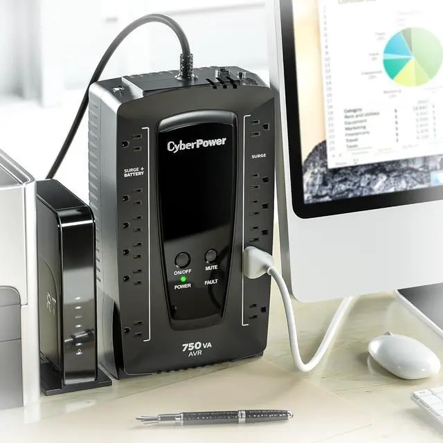 750VA/450W AVR Battery Backup Uninterruptible Power Supply (UPS) System uses simulated sine wave output to safeguard desktop computers, workstations, networking devices, and home entertainment equipment