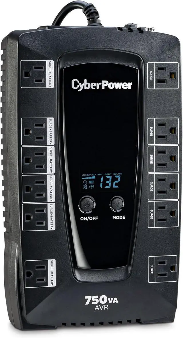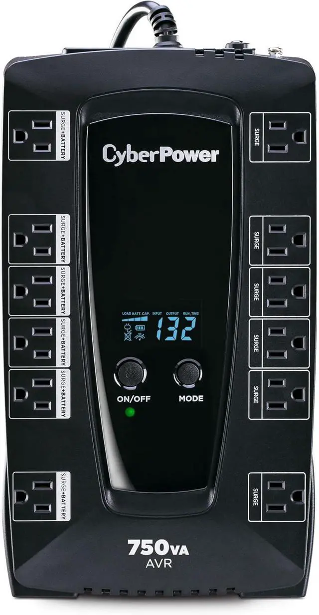 750VA/450W Intelligent LCD Uninterruptible Power Supply (UPS): Uses simulated sine wave technology to provide battery backup power to safeguard desktop computers, workstations, networking devices, and home entertainment equipment
